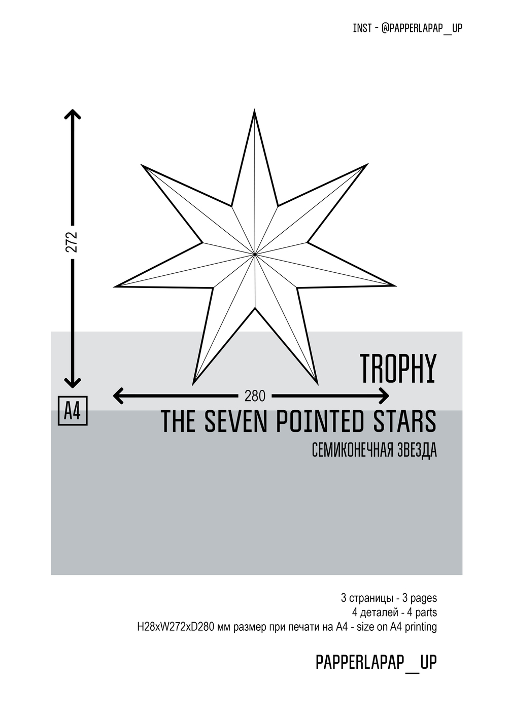 Papercraft template - Trophy - A set of 5-9 pointrd stars - Набор 5-9 конечных звёзд - PDF - PDO
